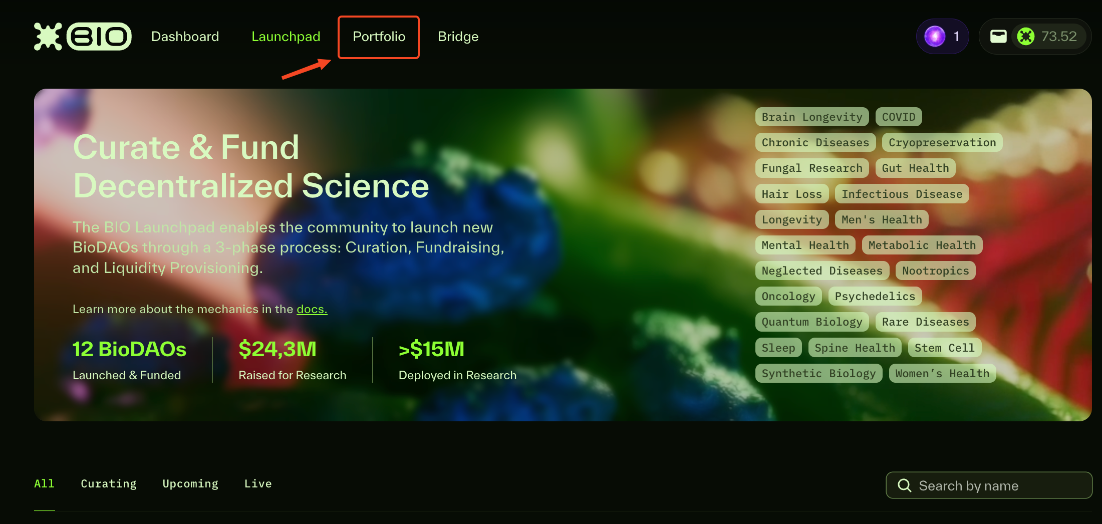 1. Navigate to the [Bio App](https://app.bio.xyz) and click "Portfolio".